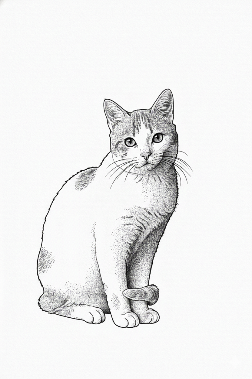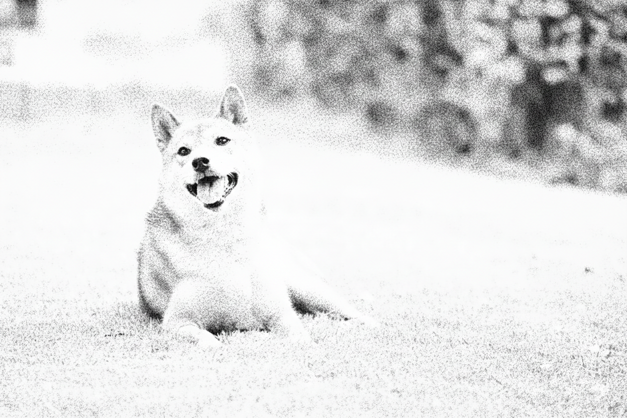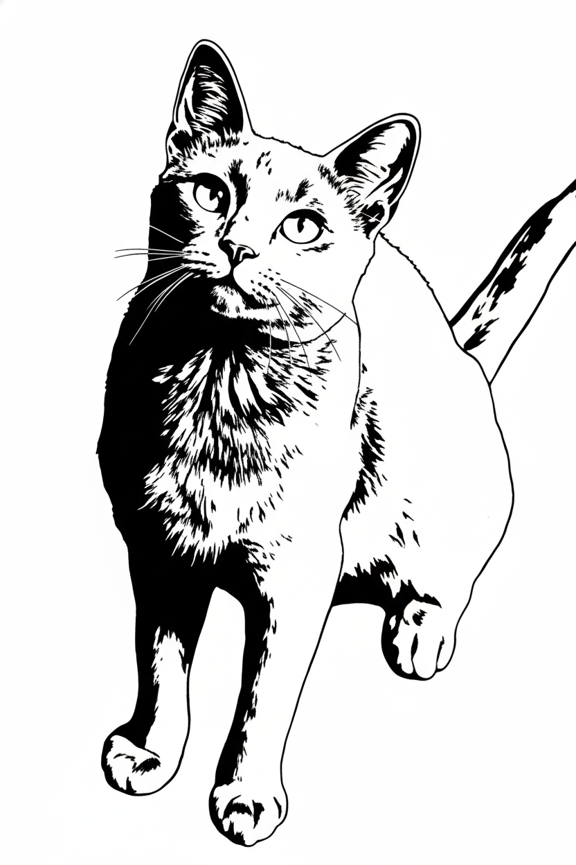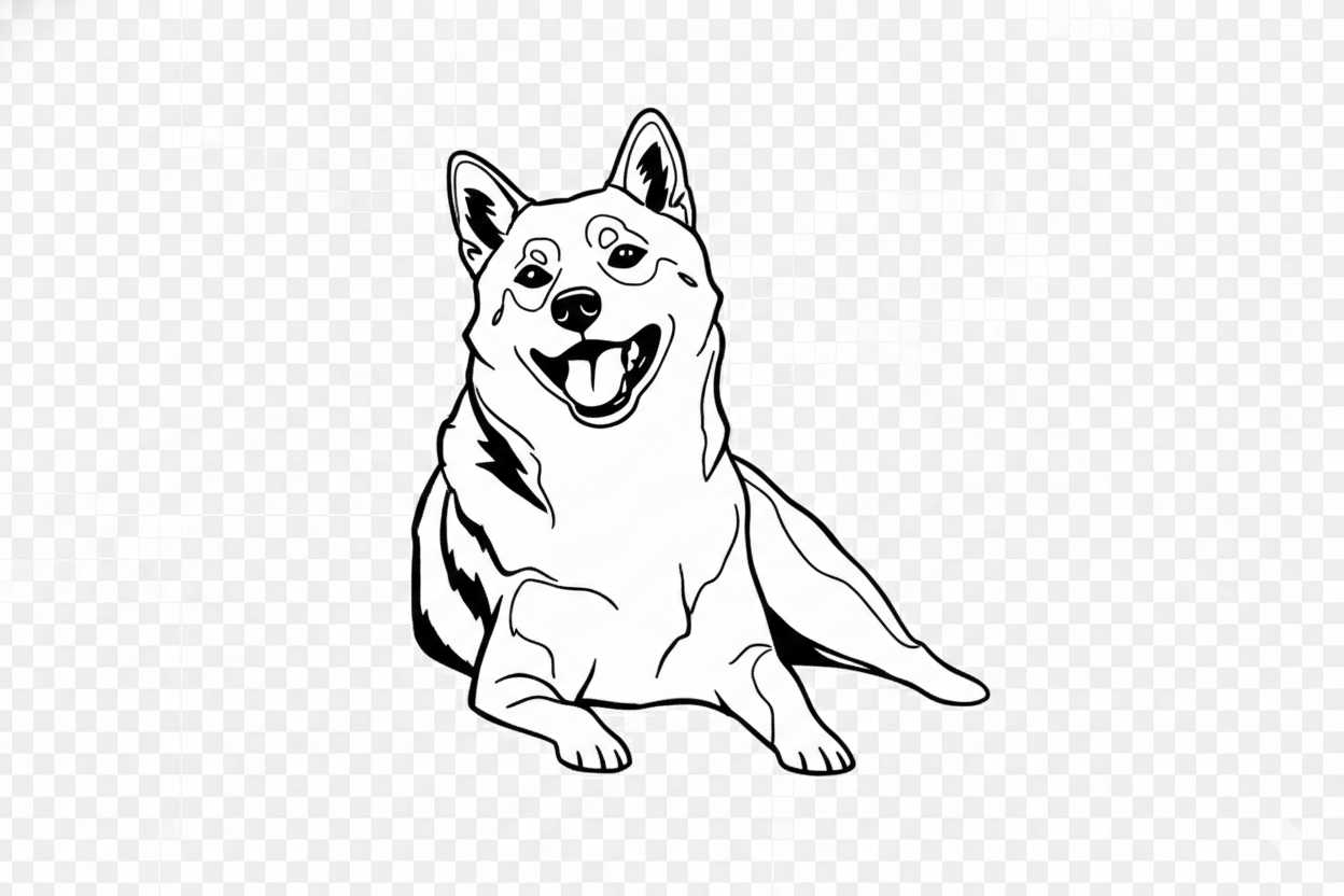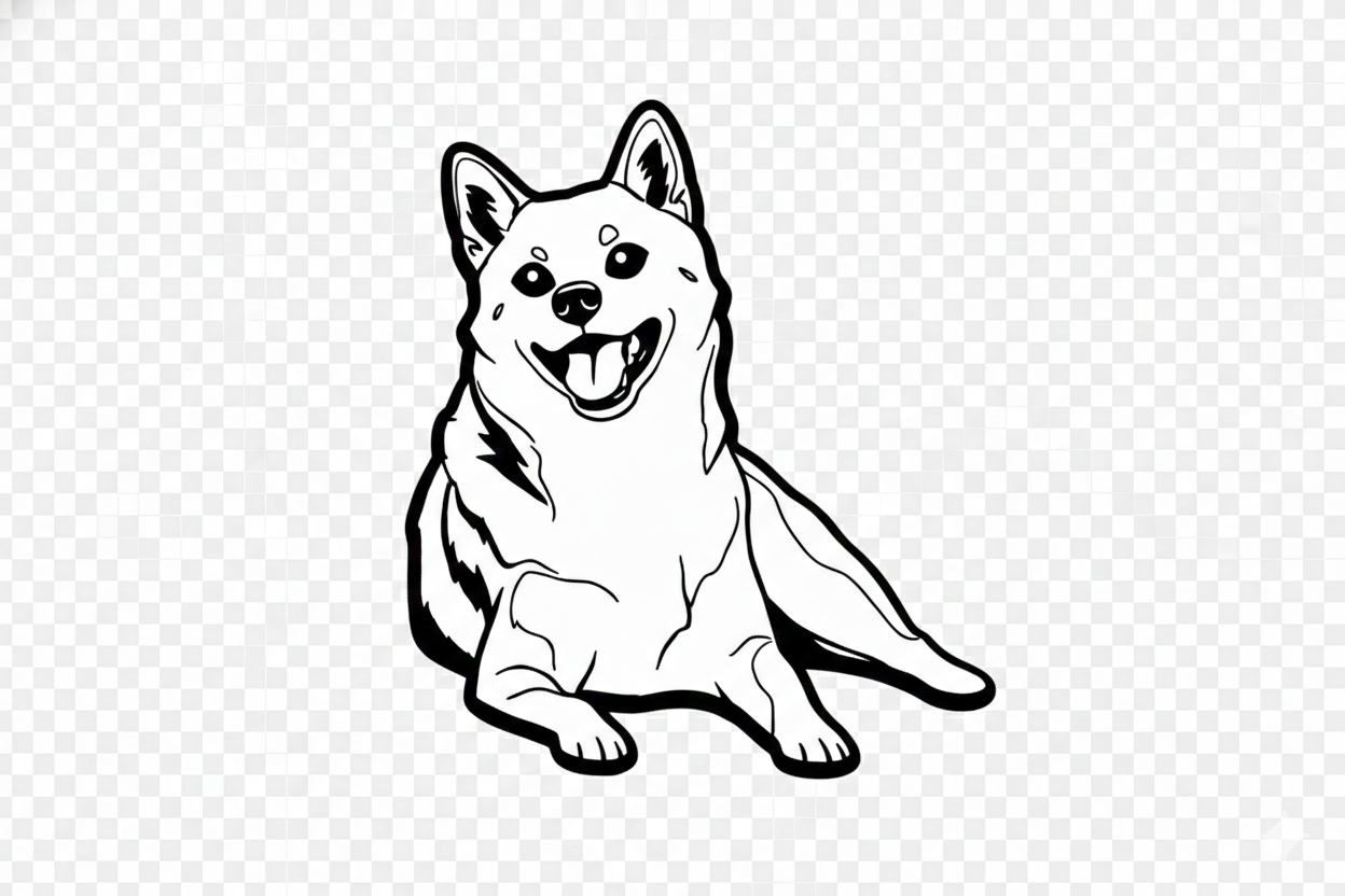 添付のペット写真(犬/猫)を基に、レーザー刻印用のモノクロ画像に変換してください。背景は完全に削除して被写体のみ。
