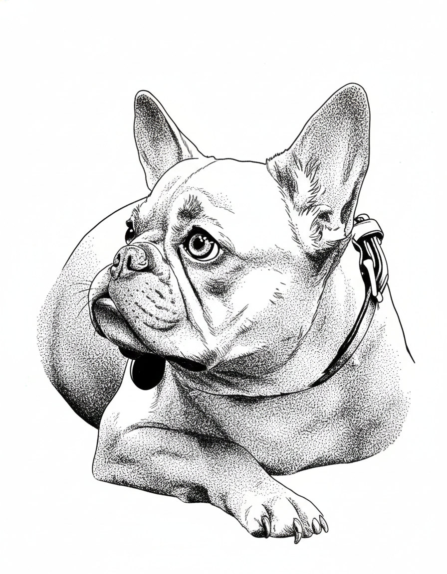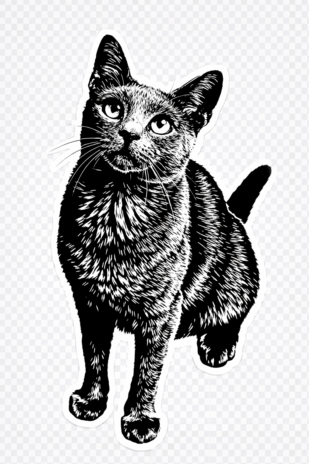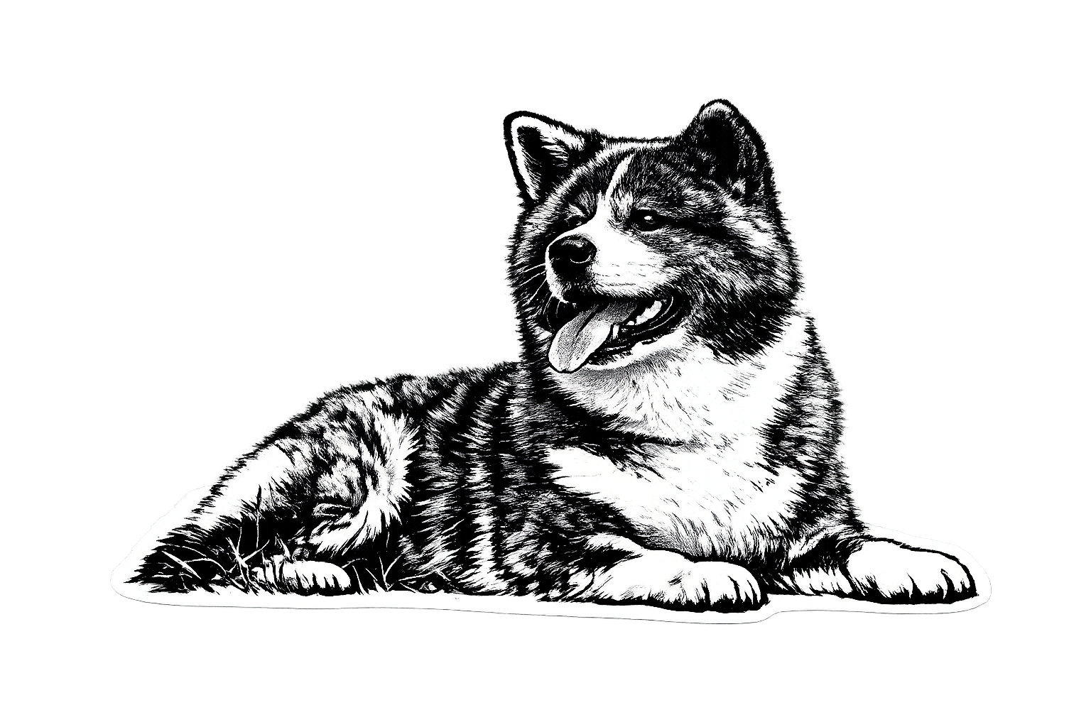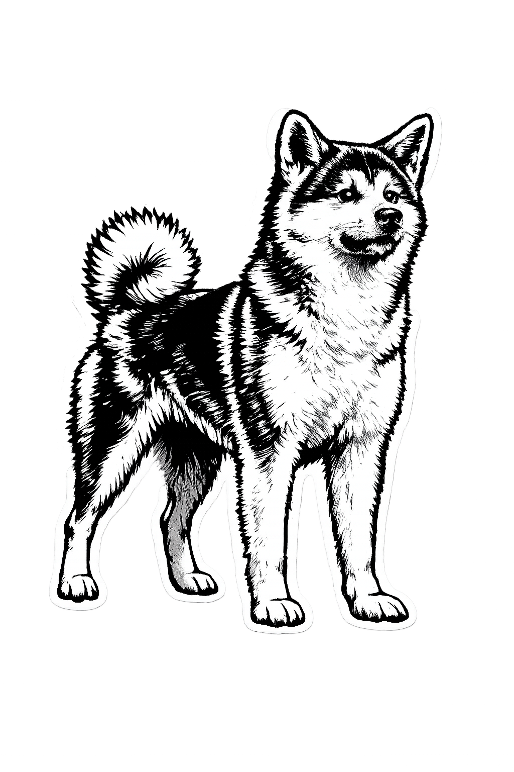 添付のペット写真(犬/猫)を基に、レーザー刻印用のモノクロ画像に変換してください。背景は完全に削除して被写体のみ。