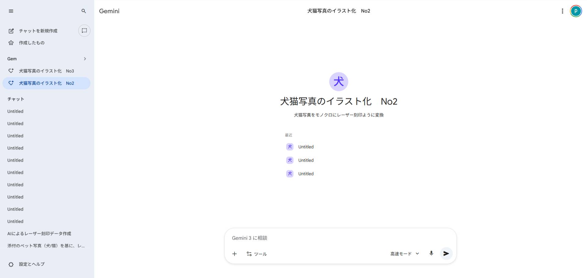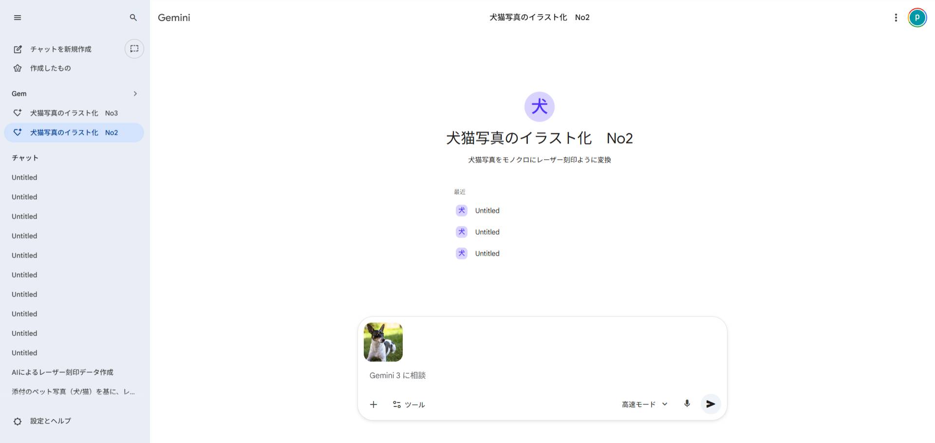 犬猫写真から、レーザー刻印するためのモノクロ画像データ生成は、Gemniの画像生成nano bananaを使用。プロンプトをGemに登録してます。