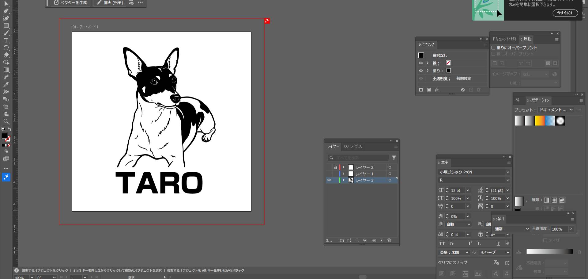 5,イラストレータで簡単な処理(アウトライン化して、 名前などいれた)