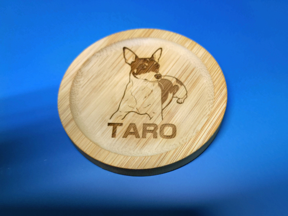 6, 同じデータで、刻印サイズ及びパラメータ等を変えて、竹製コースターへにも刻印